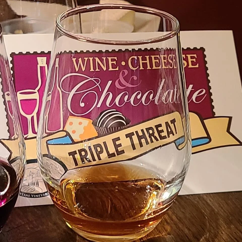 Triple Threat is like a box of chocolates - you never know what you're going to get! The plate might include a Cheeseology lesson to tame that daunting Cheese Aisle! It might take on the Choco-Vino Challenge to disprove the “experts” who say chocolate is one of five foods on the planet that will not go with any wine. To those skeptics we say -- "wanna bet"?Come curious. Leave converted.