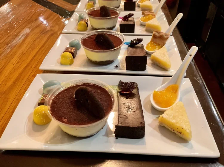 It’s education disguised as indulgence. You’ll sail through **three entrées, three cheeses, three desserts, and a flight of chocolate temptations** that feel like they were choreographed by fate.